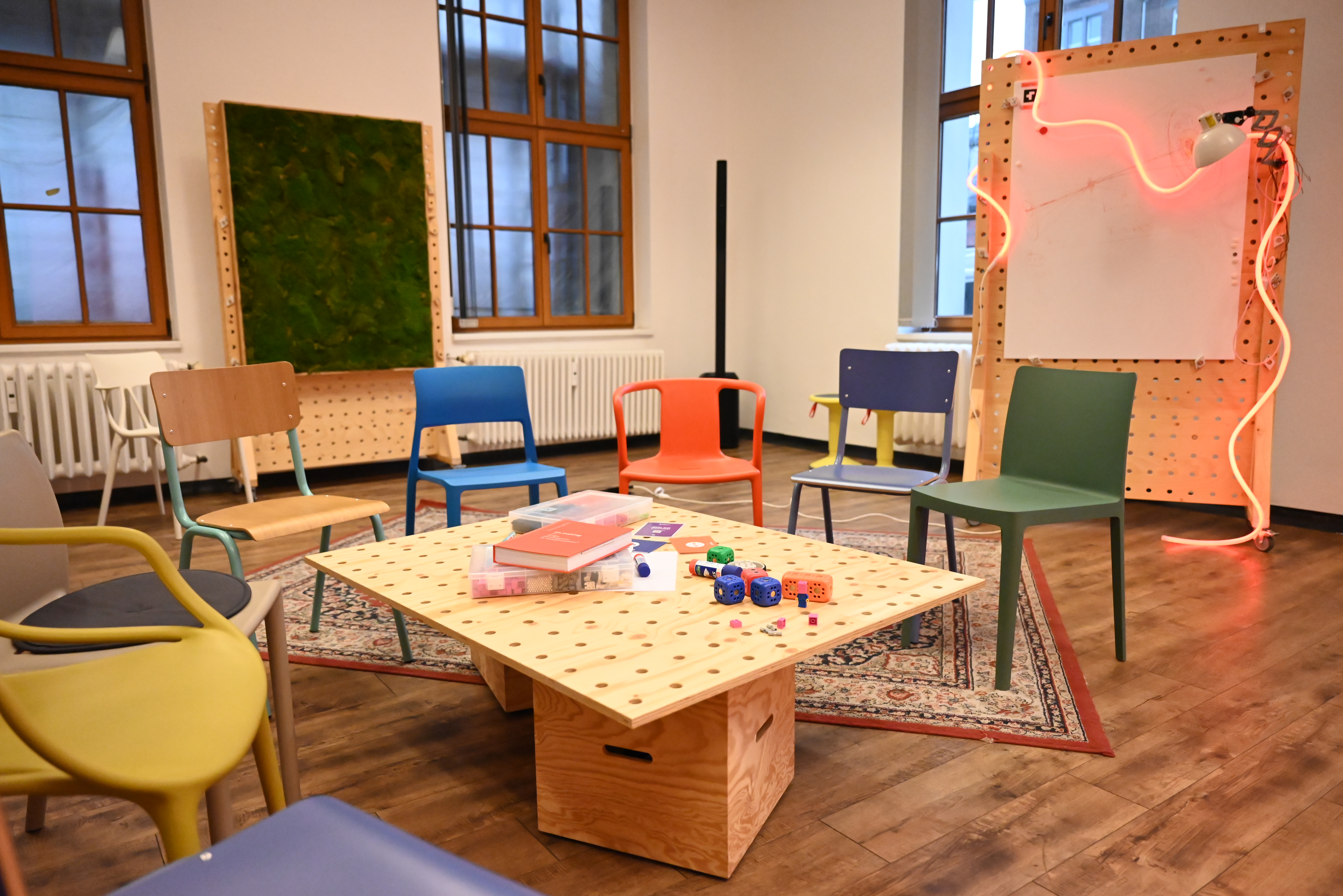 Das Lab ist darauf ausgelegt, verändert zu werden. Möbel werden verschoben. Aufstellungen ändern sich. Nichts bleibt lange unverändert. Neugestaltung geht über das Physische hinaus. Auch Annahmen, Rollen und Wissensformen sind offen für Veränderungen.